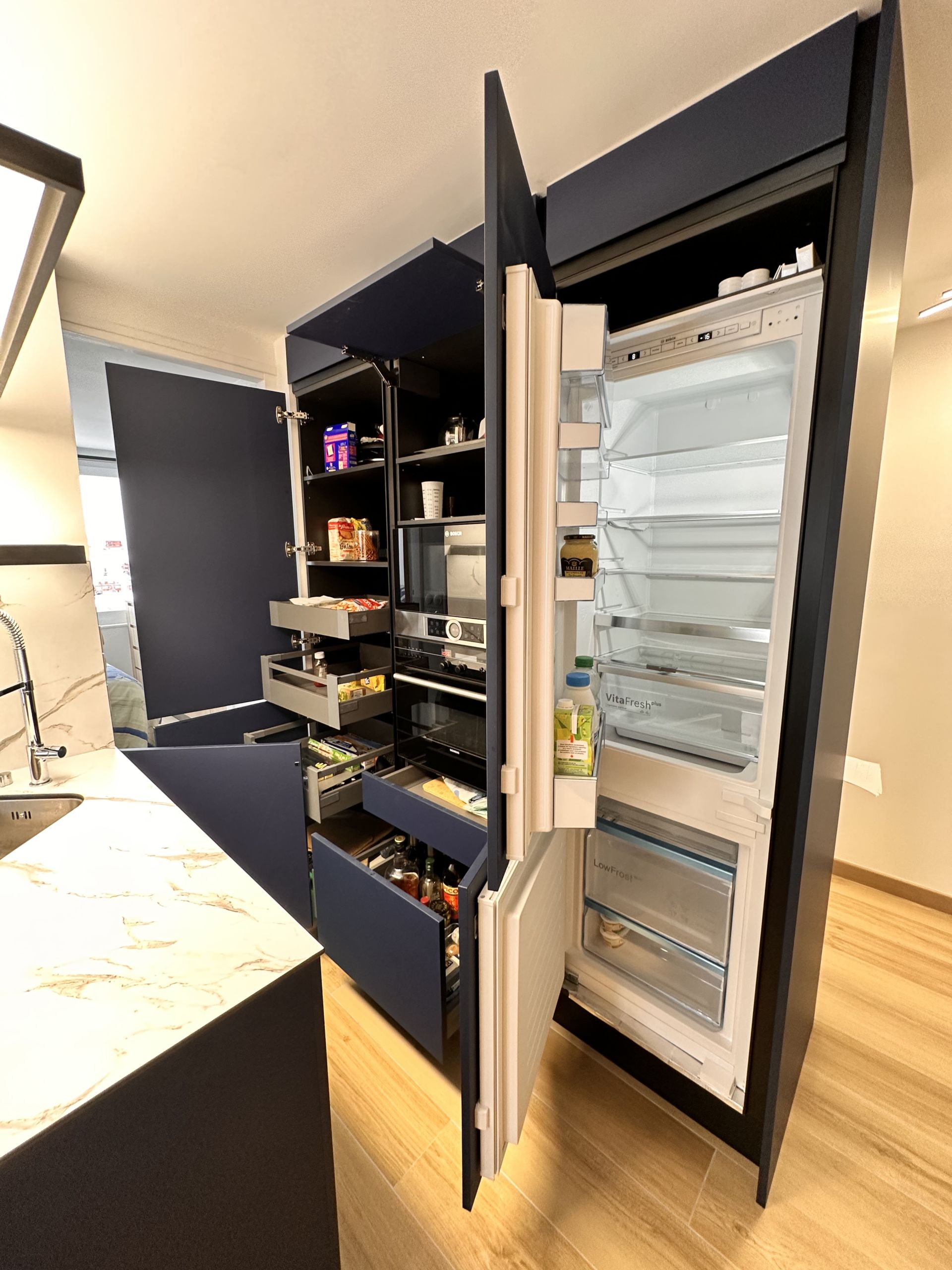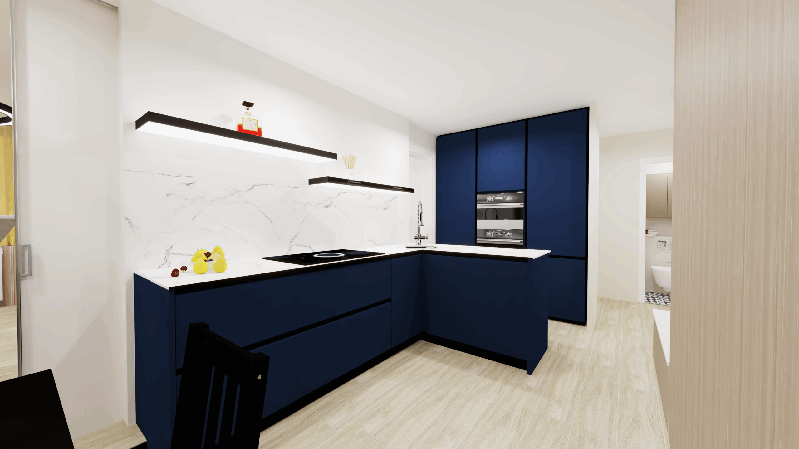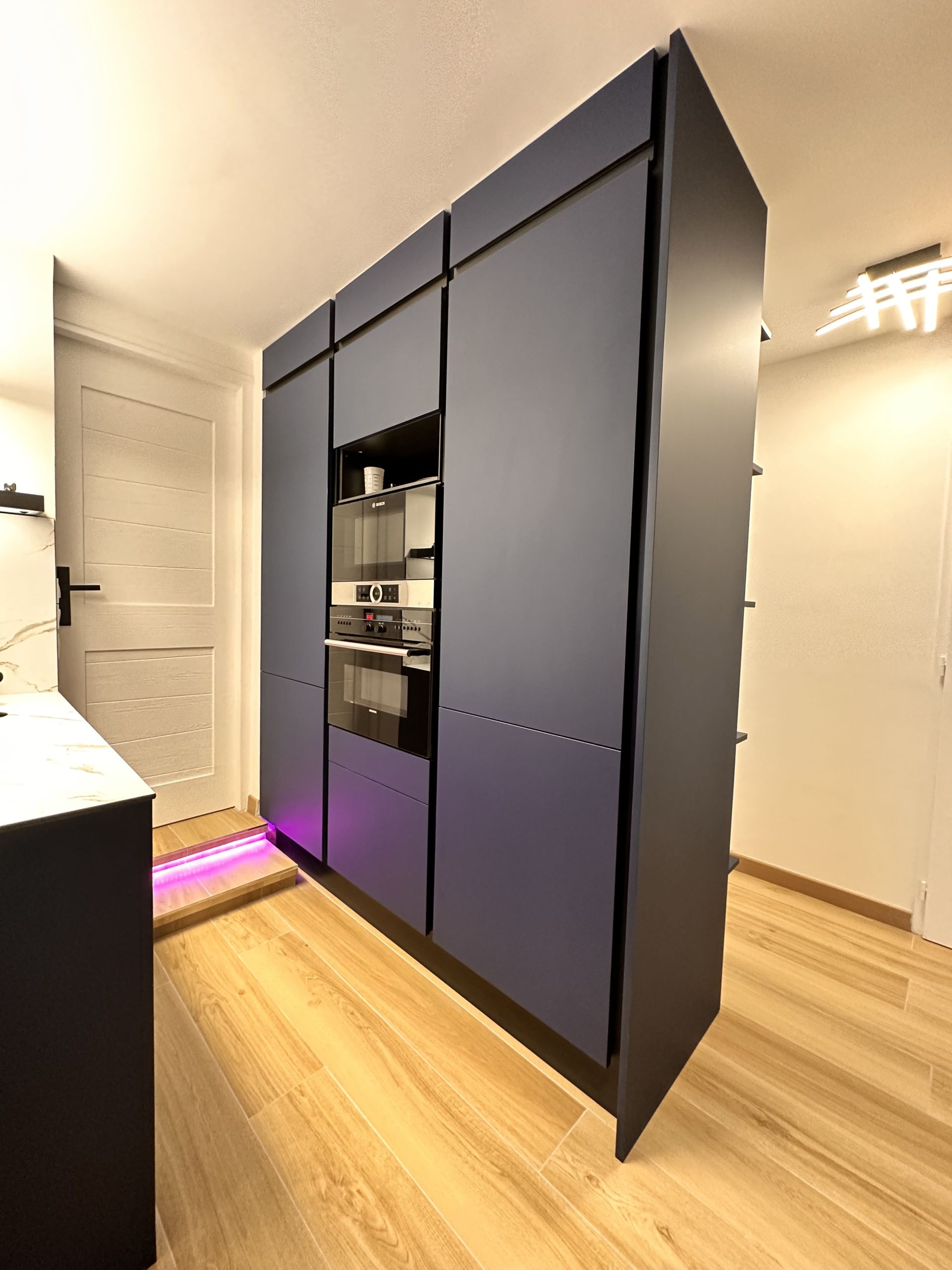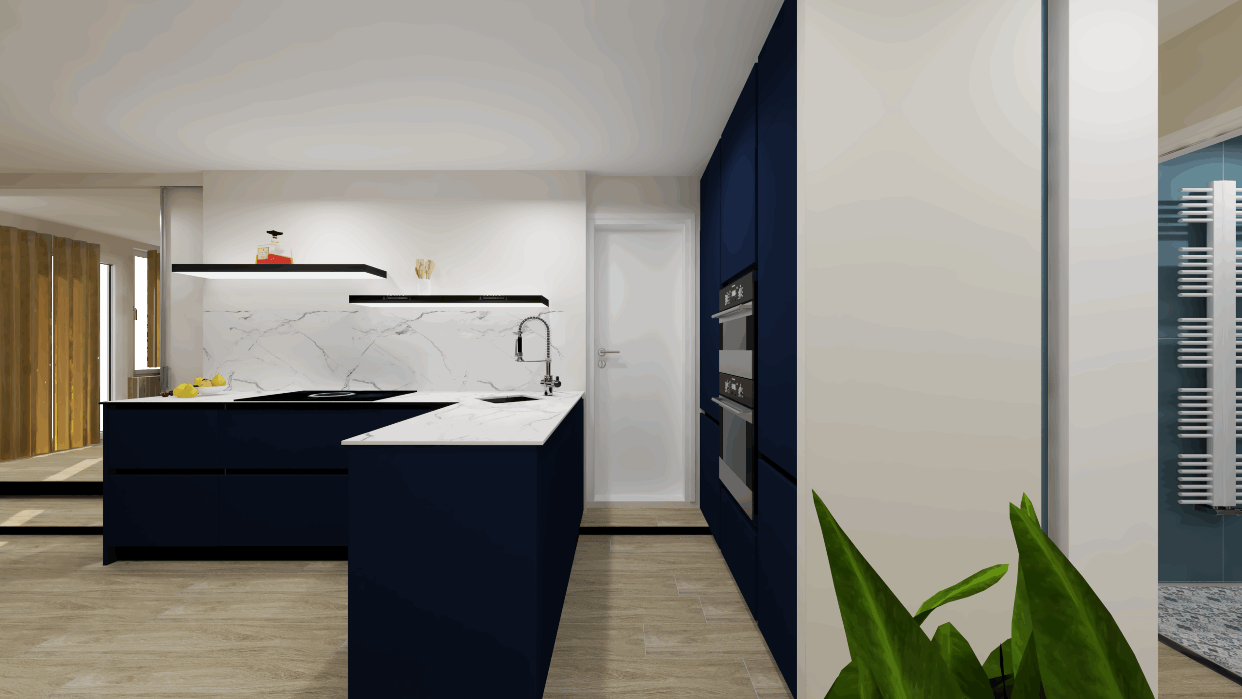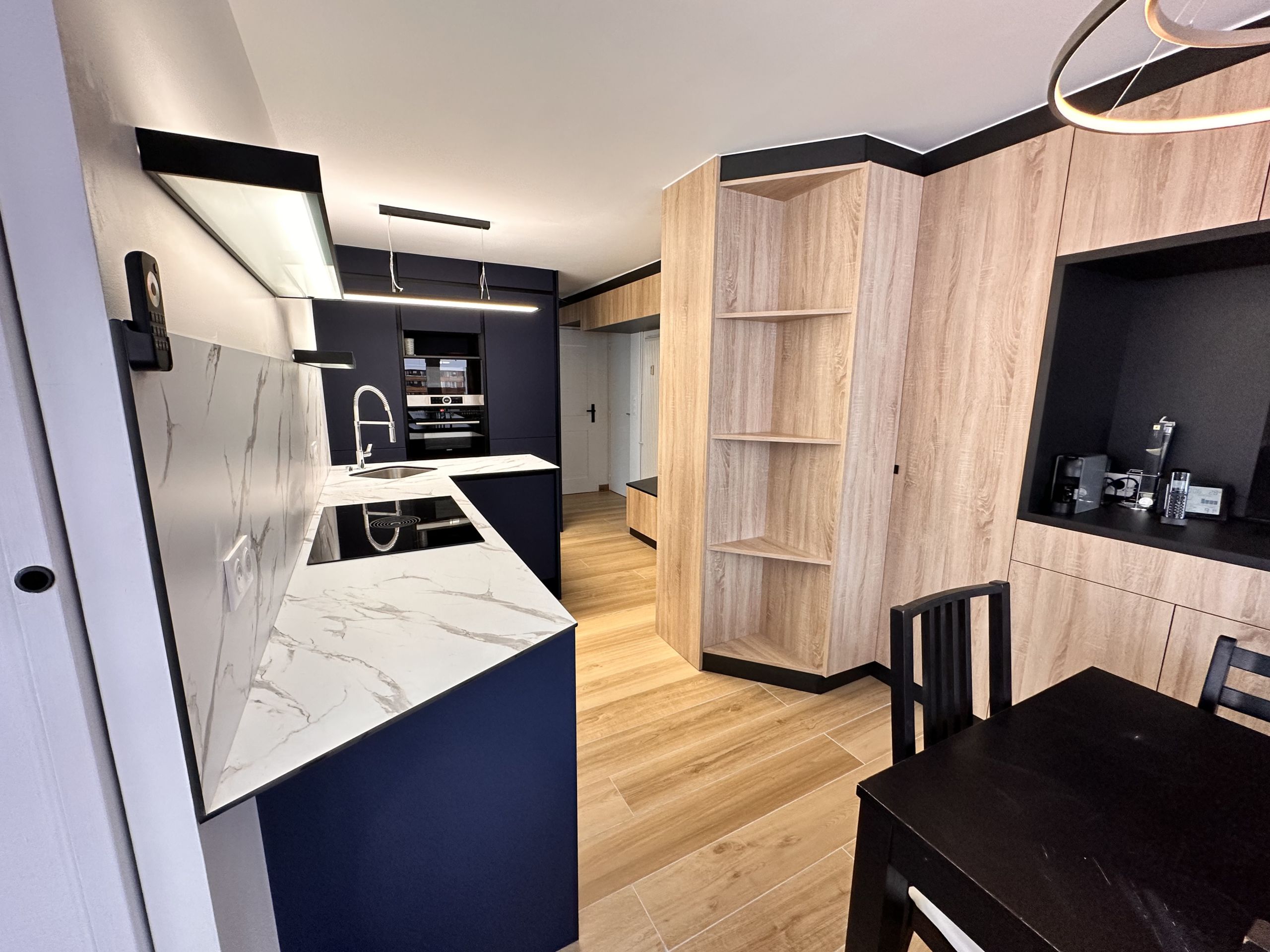 Nous avons décidé de changer complètement l’emplacement de la cuisine afin de la mettre en avant et de l’installer au centre de l’appartement.