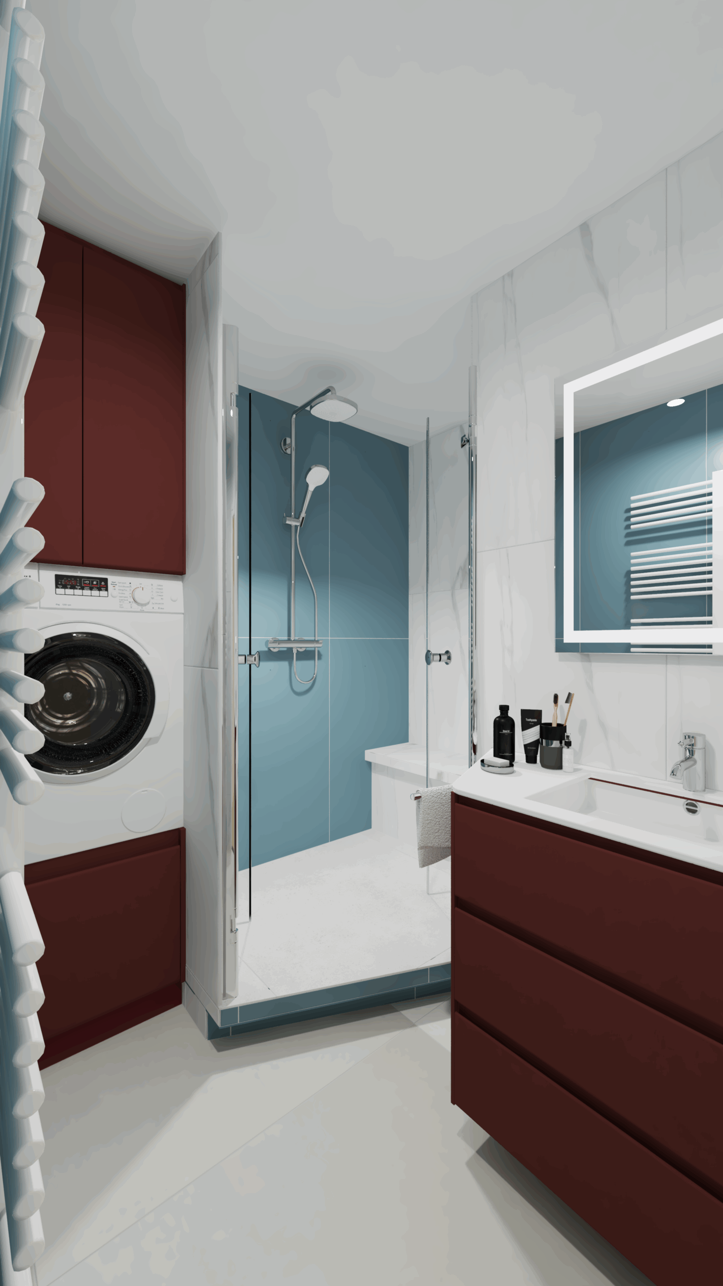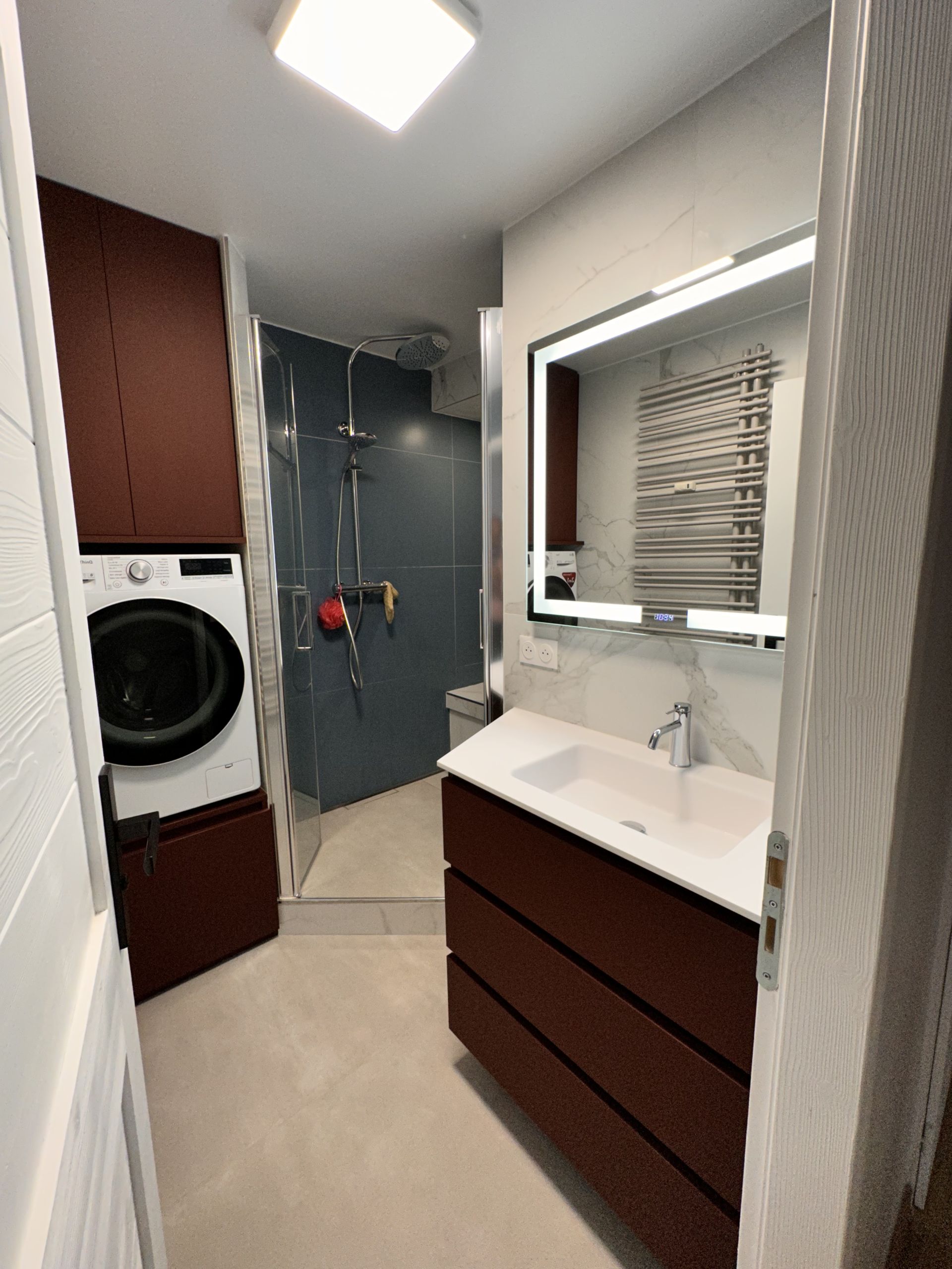 La salle de bain a été agrandie afin d’y créer une belle douche avec un coin buanderie.