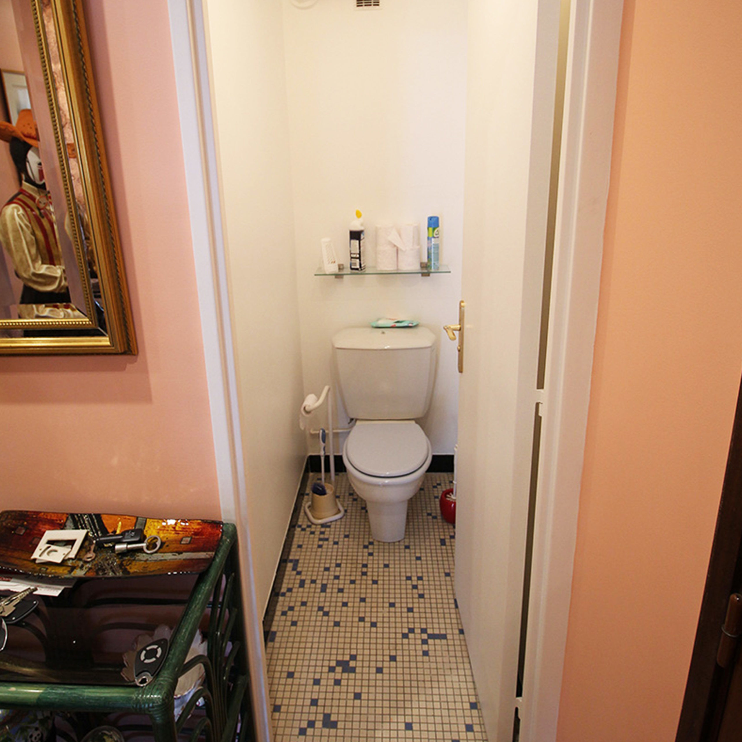 Pour cette rénovation de toilette nous avons apporté un lave main au-dessus de l’habillage du bâti et installé un miroir en partie supérieure pour apporter de la profondeur à la pièce.