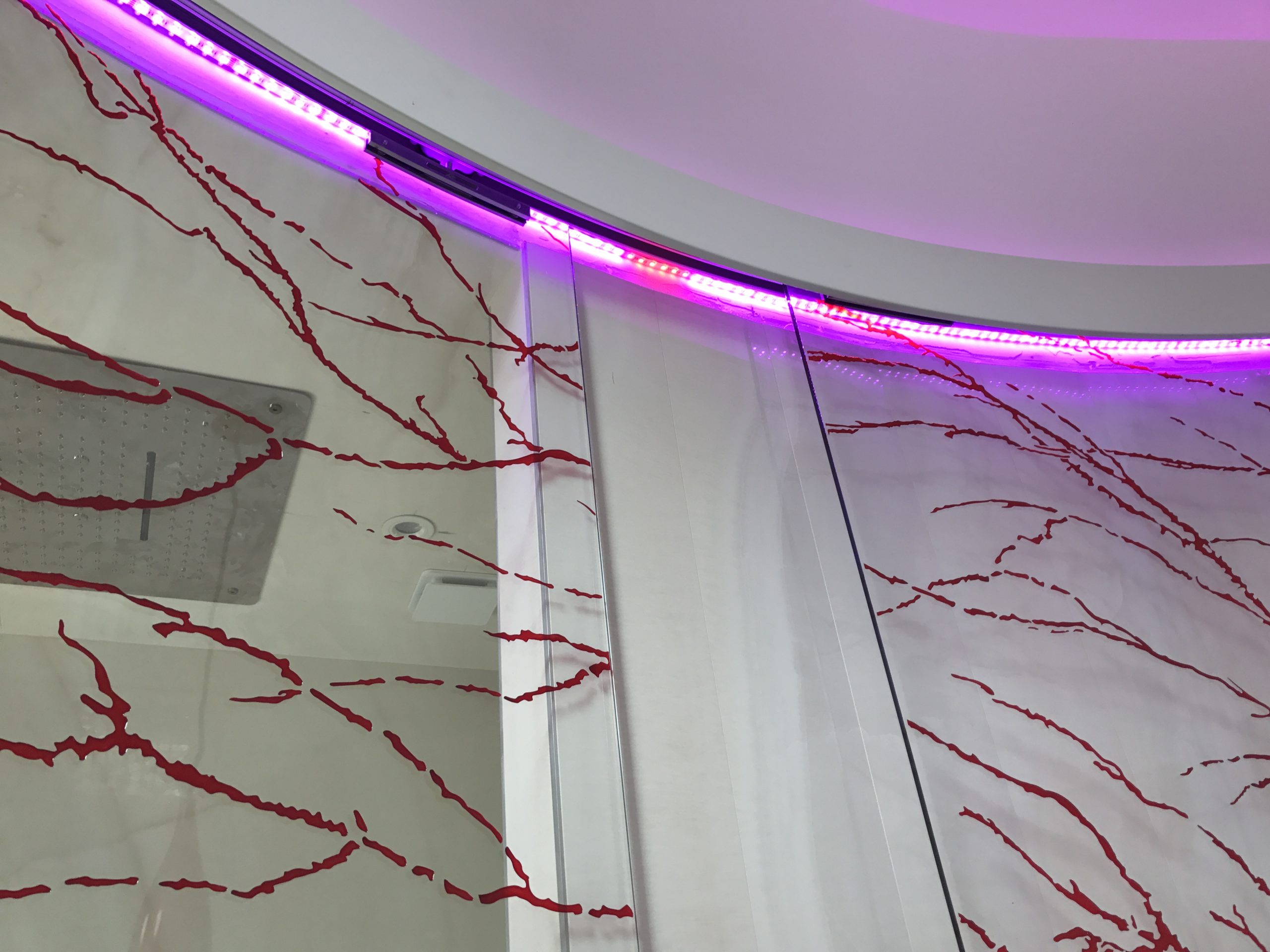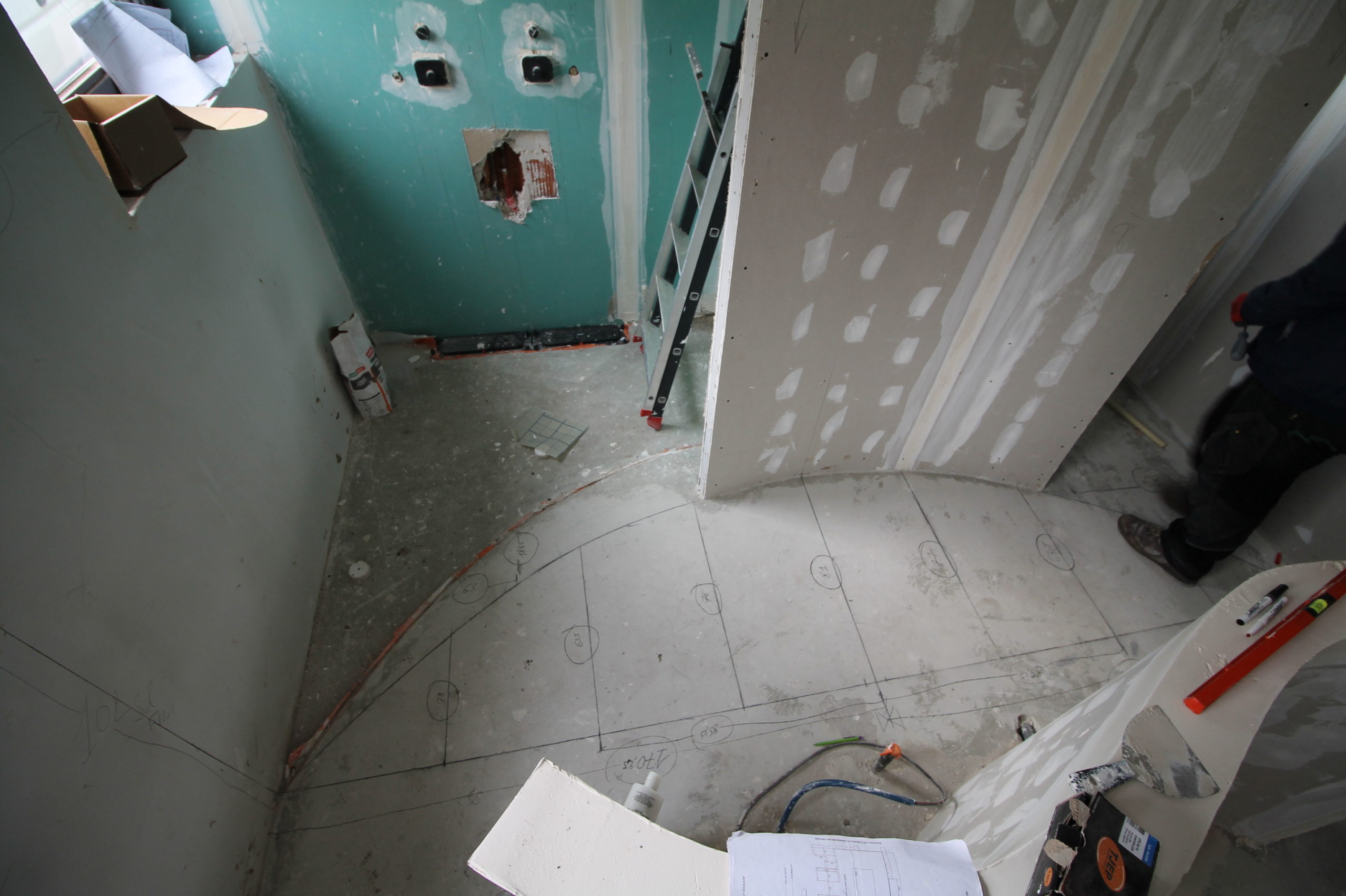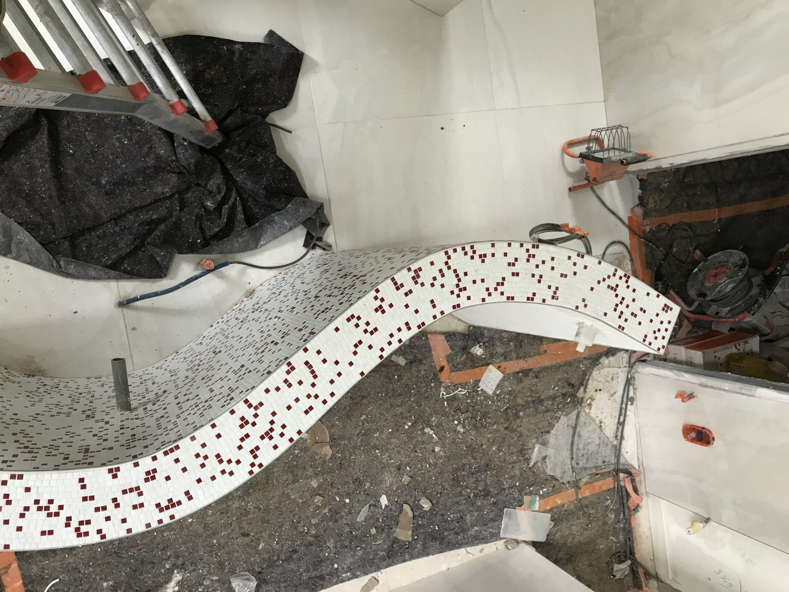 Découvrez la conception unique de cette salle de bain dans une chambre créée, et cela tout en arrondi ! Un meuble particulier avec sa forme en dollar… un concept original et un défi relevé par les Bains&Cuisines d’Alexandre.